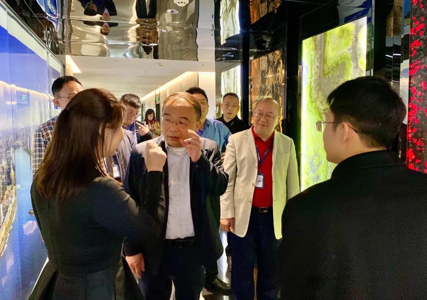 中民團隊陪同麻城市領導一行先后參觀了中民石材產業(yè)集團沉浸式智能展廳、石材文化系列展示、海景創(chuàng)客設計師共享空間等。