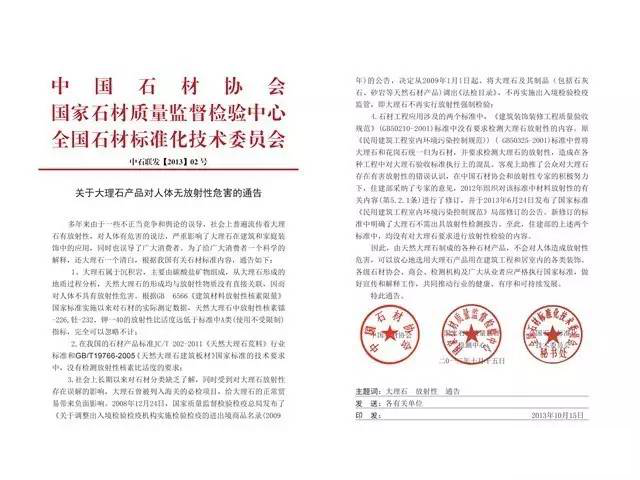 早在2010年和2013年,國家石材質(zhì)量監(jiān)督檢驗(yàn)中心、全國石材標(biāo)準(zhǔn)化技術(shù)委員會(huì)及中國石材工業(yè)協(xié)會(huì)先后兩次發(fā)布《關(guān)于天然大理石產(chǎn)品對人體無放射性危害的通告》,所以天然石材,可放心使用。
