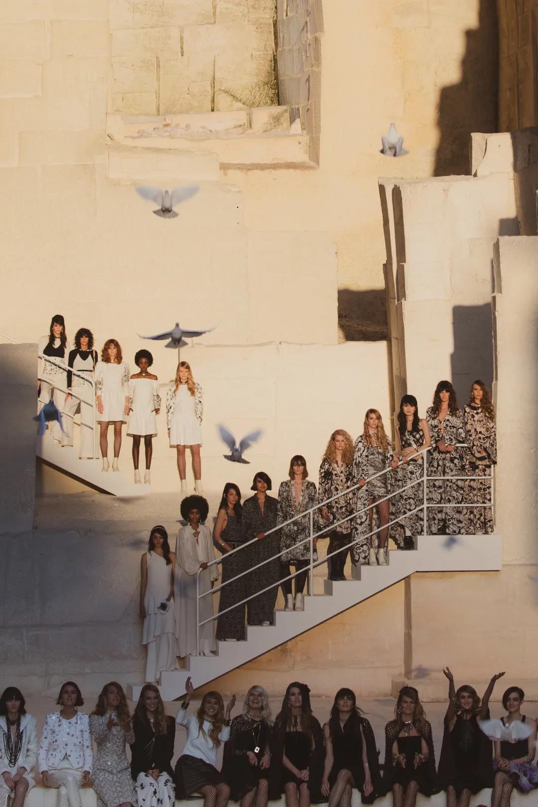 5月5日0點(diǎn),CHANEL 2022早春度假系列于法國(guó)南部普羅旺斯萊博村莊的光影采石場(chǎng)發(fā)布,創(chuàng)意總監(jiān) Virginie Viard 以香奈兒女士的摯友尚·考克多和他的電影《奧菲斯的遺囑》中采石場(chǎng)場(chǎng)景一幕為靈感打造全新系列。
